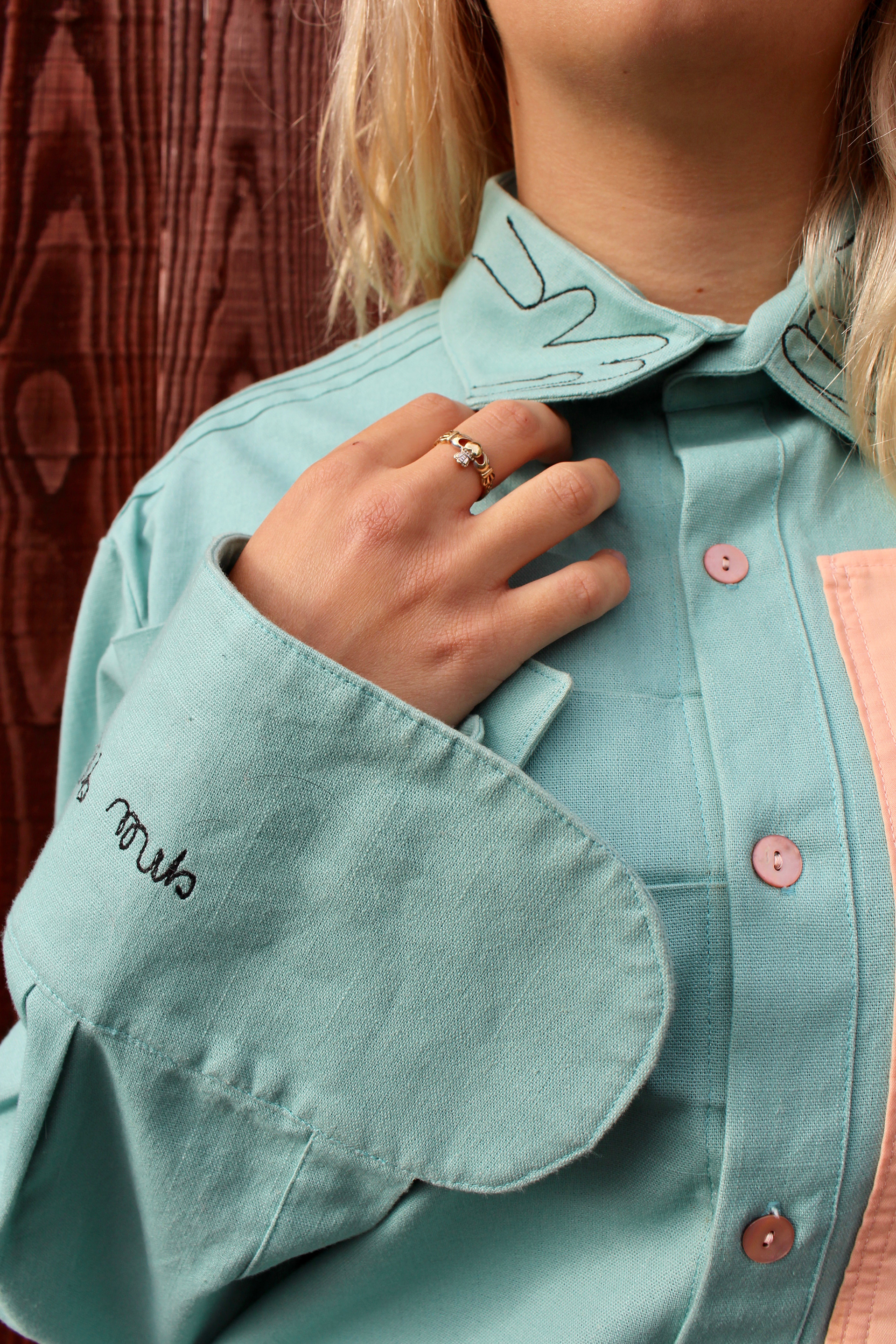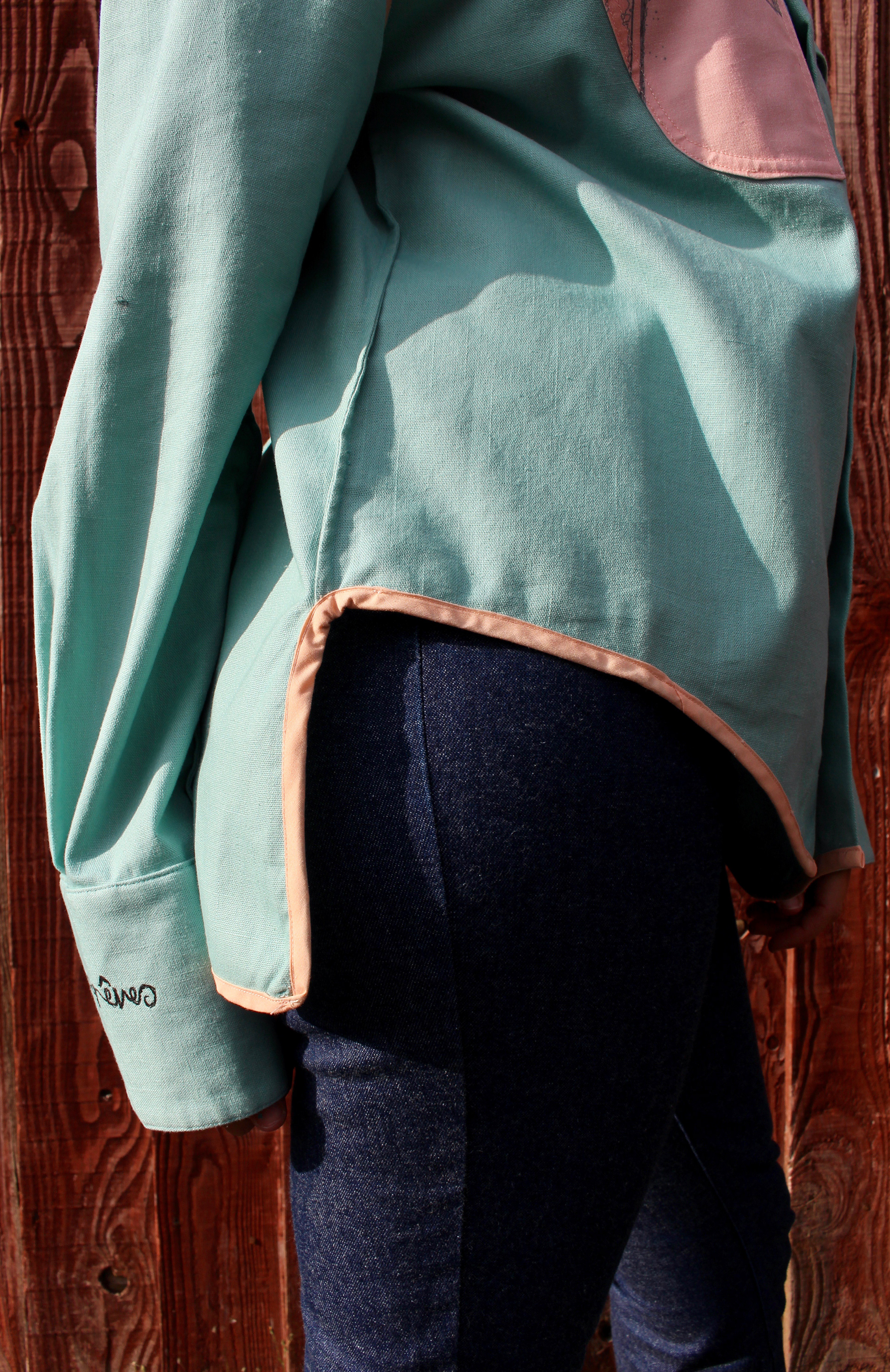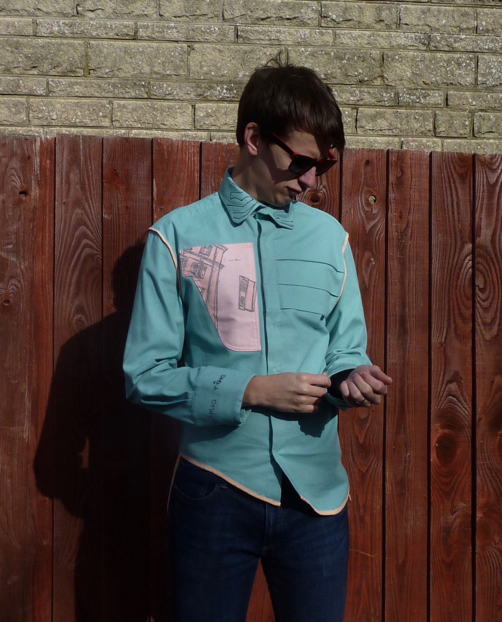 Unisex Reversible Shirt designed and made by Rebecca L Partlett Womens: Photographed by Beth Nash Modelled by Rebecca L Partlett Mens: Photographed by Rebecca L Partlett Modelled by Chris Partlett
